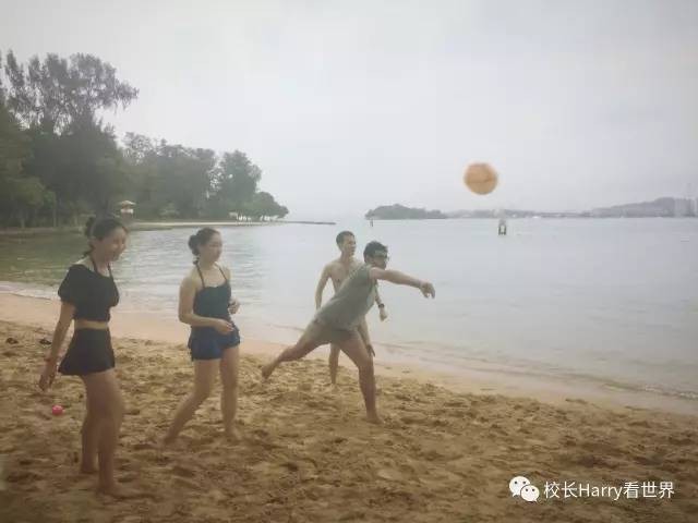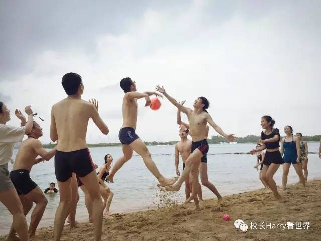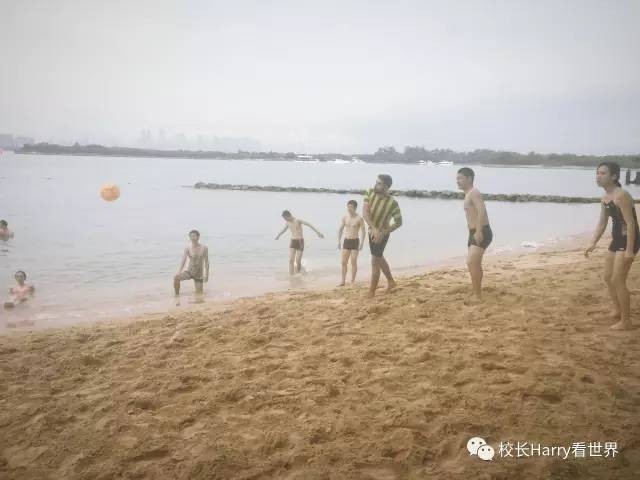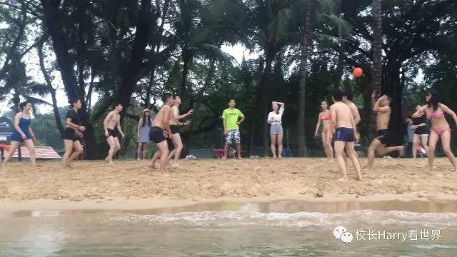 收拾完毕,大家基本都换上泳装。前往海边,比赛沙滩排球。