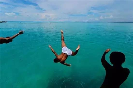 他们常常跳入海里,前滚翻、后滚翻,花样百出