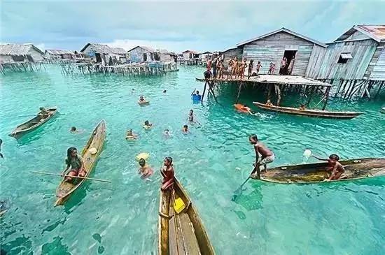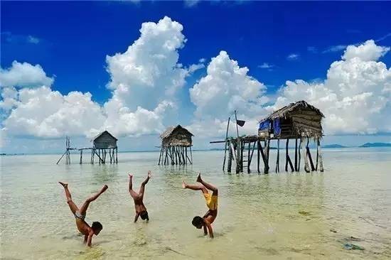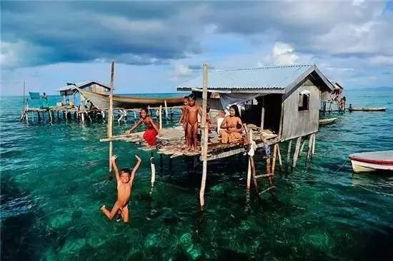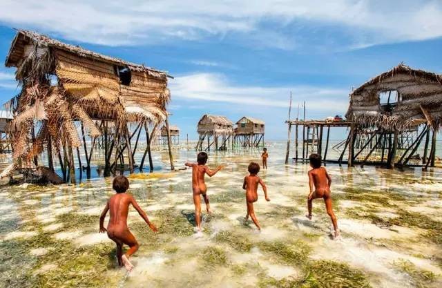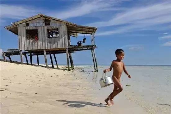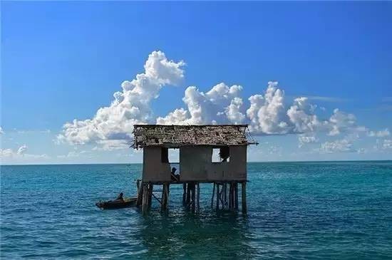 他们在浅海珊瑚礁盘上搭建起简陋的水上木屋