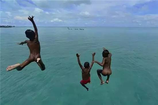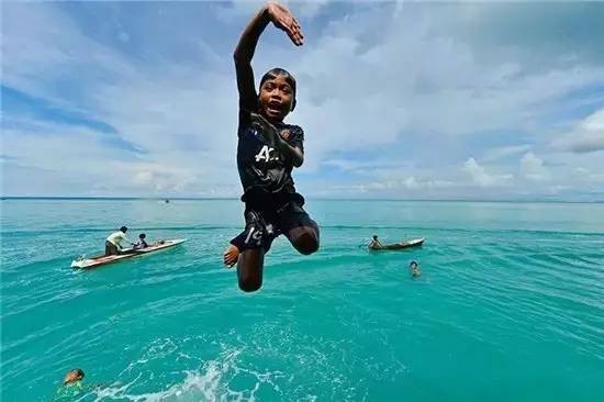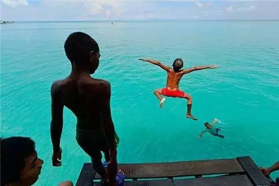 但得天独厚的海水也给孩子们练就了跳水真功夫