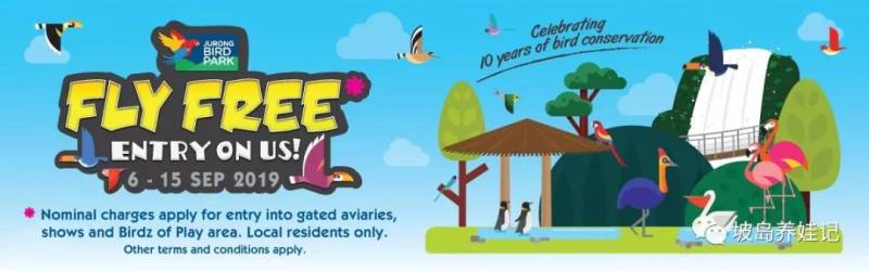 为庆祝10年的鸟类保护活动,裕廊飞禽公园免费向所有当地居民开放大门*!2019年9月6日至15日的10天内,新加坡人,永久居民和FIN持有者可免费进入裕廊飞禽公园*。