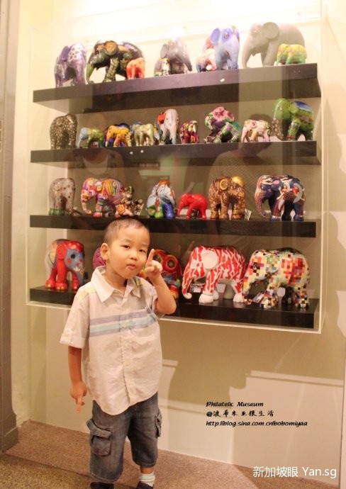 今年新加坡有保育亚洲象的宣传活动,市区各处都有可爱的大象艺术品,博物馆里把所有艺术品缩小,全套展示,小象看到自己的吉祥物,怎能不兴奋啊!