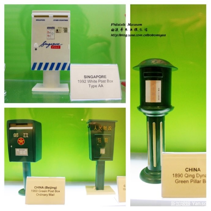 新加坡的邮筒是白色的,中国的是绿色的,英国的是红色的,还有我们清朝的邮筒,很帅!