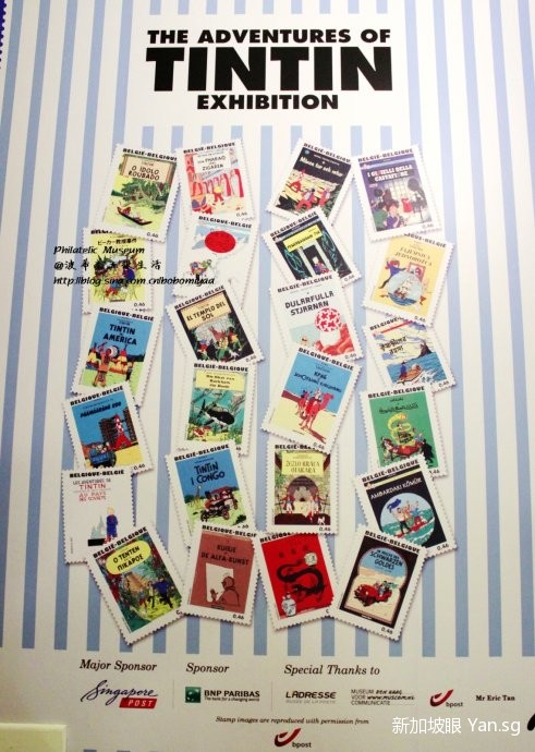 看过一楼,我们来到二楼,其中一个部分就是《丁丁历险记》了,可能很多中国人对这部漫画并不太熟悉,包括我自己在内,它是比利时漫画家的作品,从1929年已经开始报纸上连载,一个富于冒险精神的小记者和他的忠实爱犬,在世界各地掀起了热潮,已经被翻译成包括中文在内的58中文字,至今仍然再版着,2011年,大导演,史蒂芬斯皮尔博格把它拍成了电影,所以从去年到今年,The adventures of Tintin的宣传画册和明信片也在新加坡出现了很多。