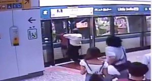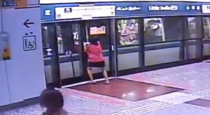 惊险一幕!新加坡剽悍大妈“手撕”地铁门……