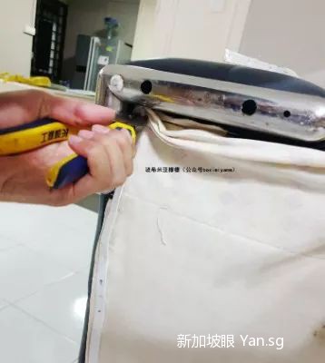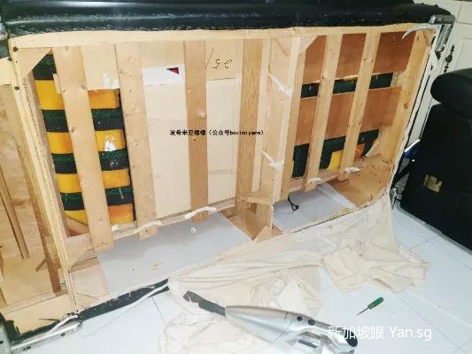 终于坐不住了,等到老公回家以后,我们决定把沙发底部拆掉,看看里面到底是什么虫子作怪。只是沙发已经用了九年,底部被重新钉过,拆起来相当费劲。