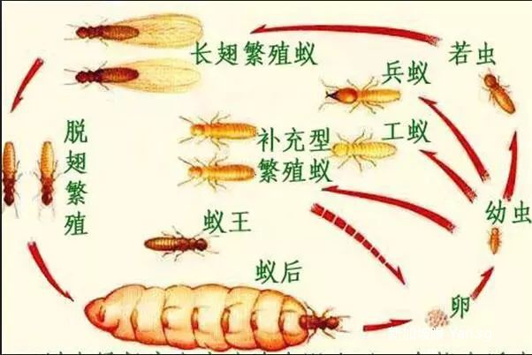 附上图片,让大家了解一下白蚁的繁衍过程…….