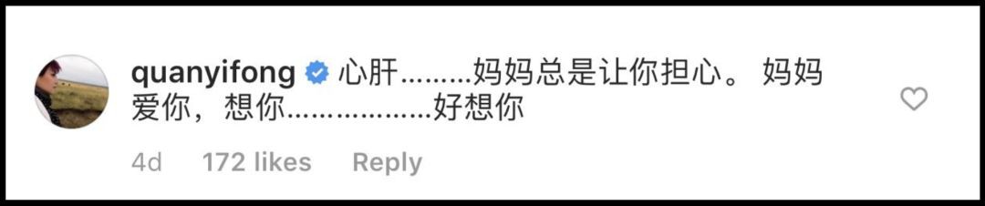 看到女儿如此高调示爱,权怡凤自然是感动得不得了,字里行间都体现出了对女儿的思念之情~