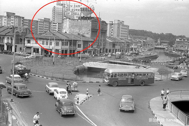 ▲1963年的明谷连街、惹兰勿萨、梧槽路路口,图中标红圈的地方为日后的森林广场 ,图源:新加坡通讯及新闻部