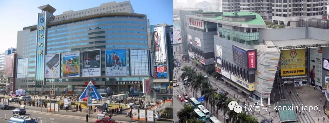 ▲海龙大厦(左)和华强北(右),图源:淘会场(左)和华强电子世界(右)