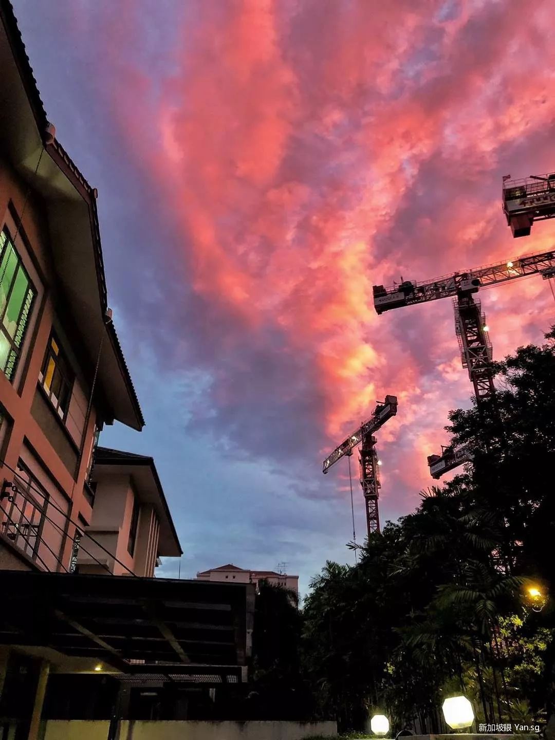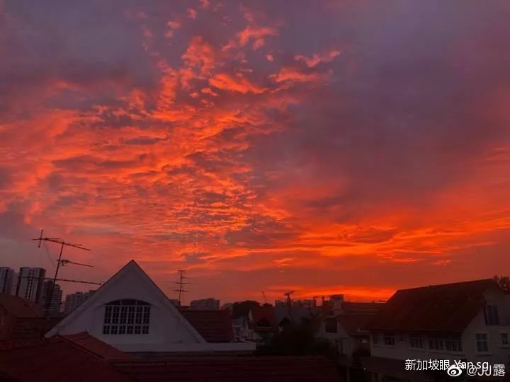 住在Tanjong Katong的网友还专门爬上自家房顶看晚霞…….顺带一提,这是无滤镜拍摄!