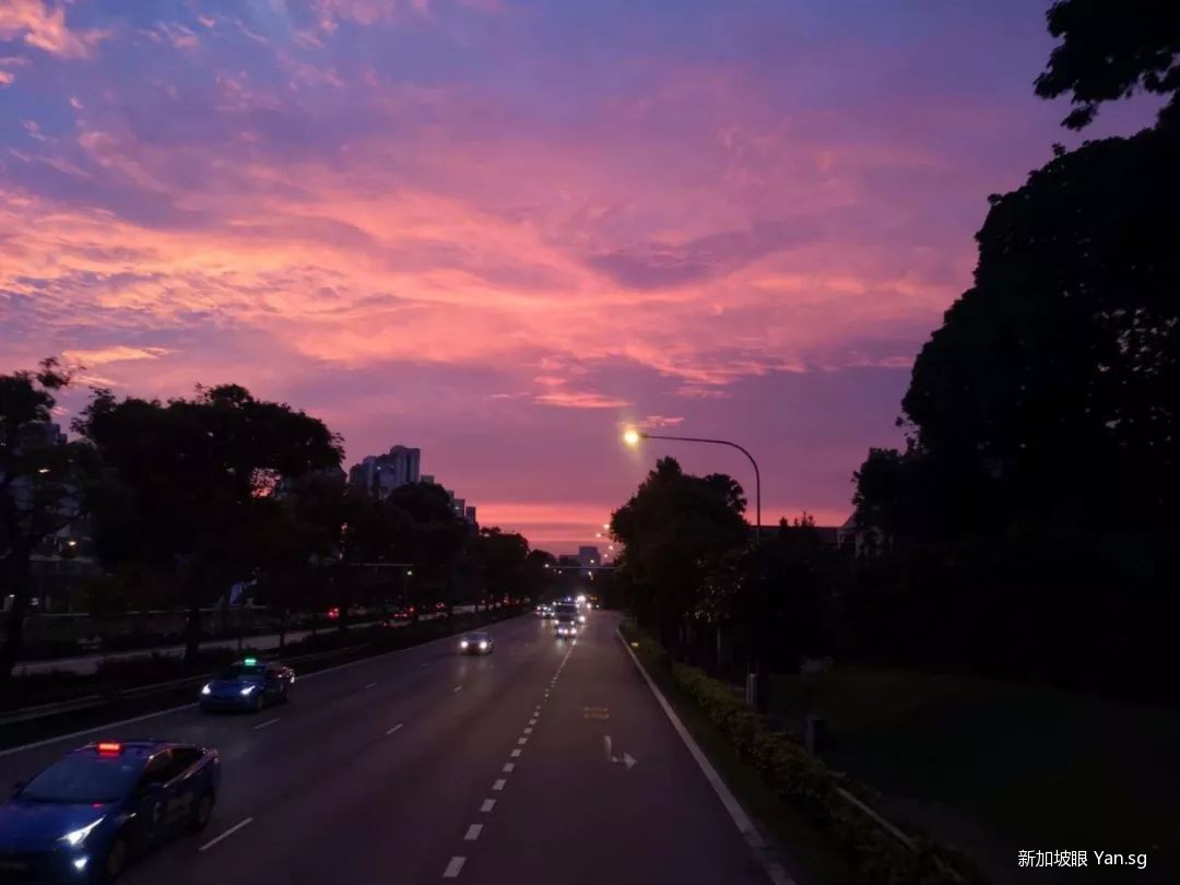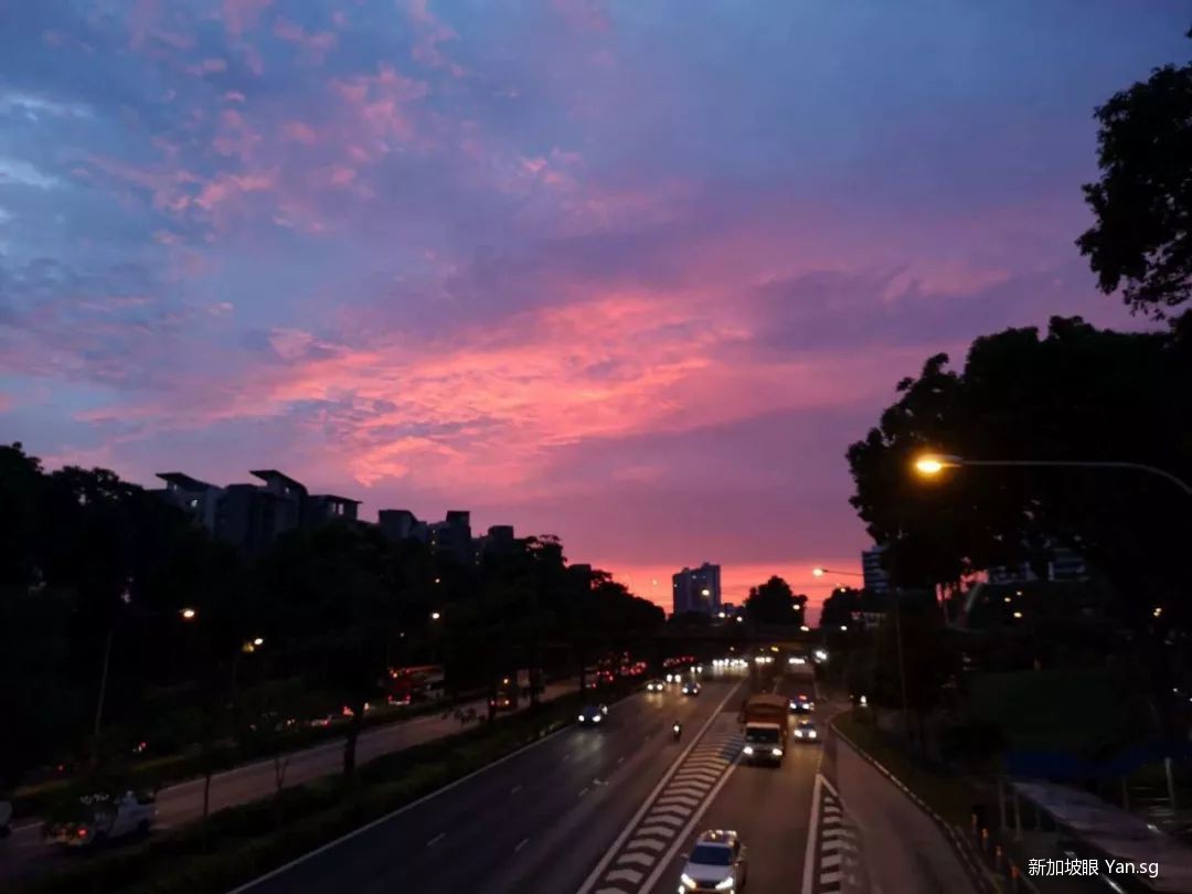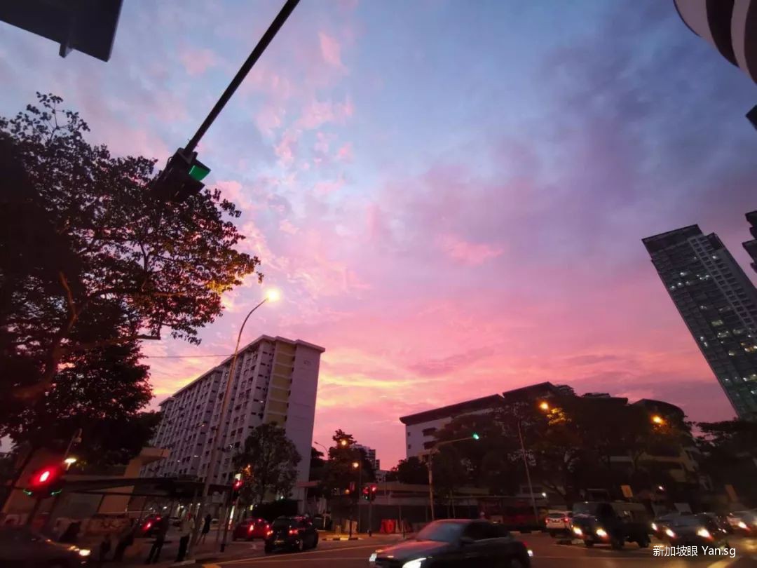 今天(6月24日),新加坡的晚霞再次惊艳了大家!整个天空都笼罩在浪漫的紫粉色中…….