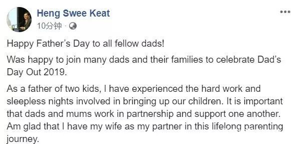 副总理王瑞杰也发表感言。祝所有父亲节日快乐!