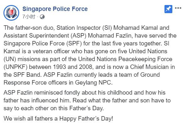新加坡警察局今天也发布了这么一条帖子“这些坚守岗位的父亲们,虽然无法时刻陪伴孩子,却以身作则教育着下一代。”