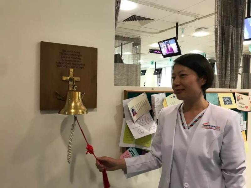 医护人员为出院患者鸣钟祝贺