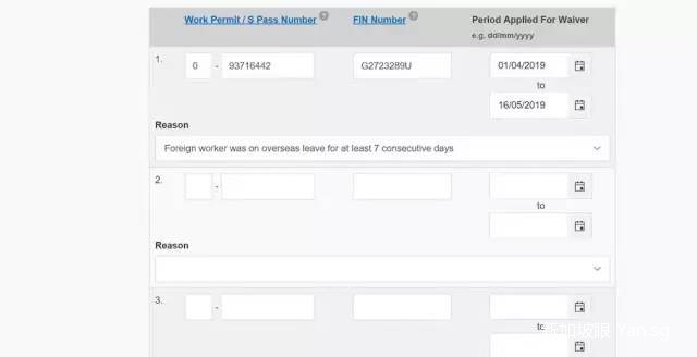 按照下图格式填写女佣的准证号码,FIN号码和申请出境日期,按照劳工部预设选项找个退税理由