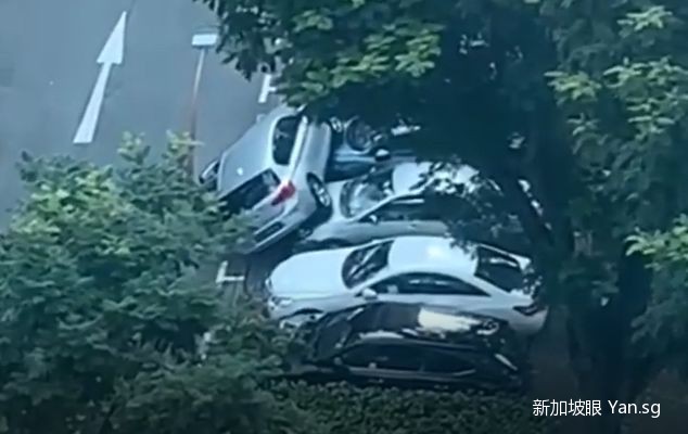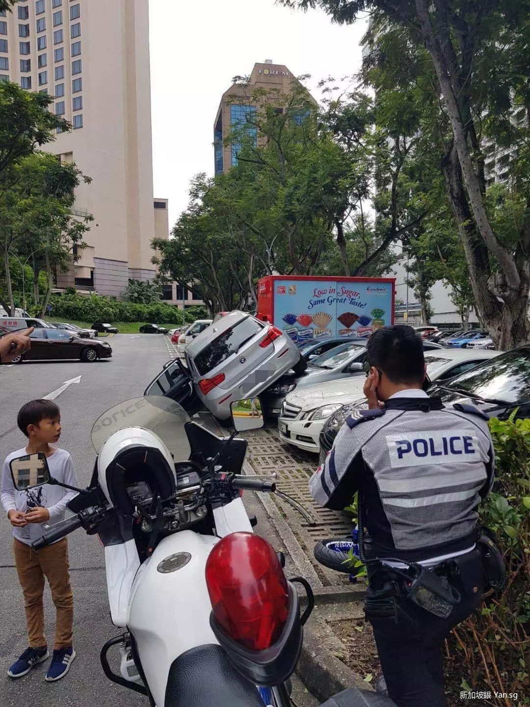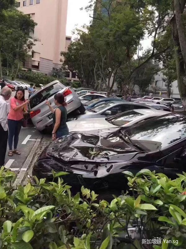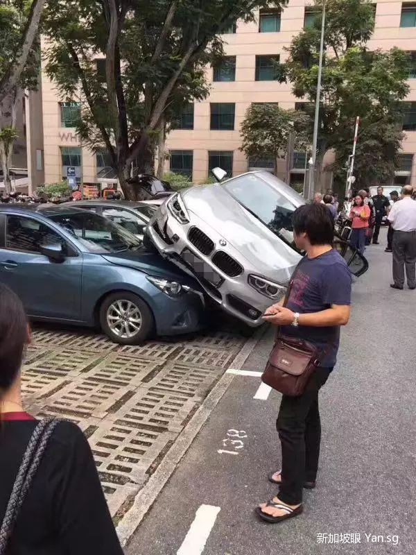 新加坡70岁奶奶开宝马,一脚油门骑上4辆车车盖