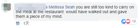 还有人称赞Seah当天的行为(继续留在餐厅里吃完饭),觉得如果是自己,肯定就直接走人了。