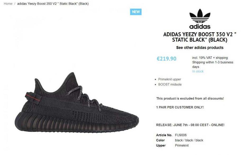 鞋子采用全黑色配色。使用黑色和灰色色调贯穿其Primeknit鞋面,搭配Black Boost中底。其他细节包括反光鞋带和内衬三条线。全球仅发售95000双。官网售价为219.9欧元。