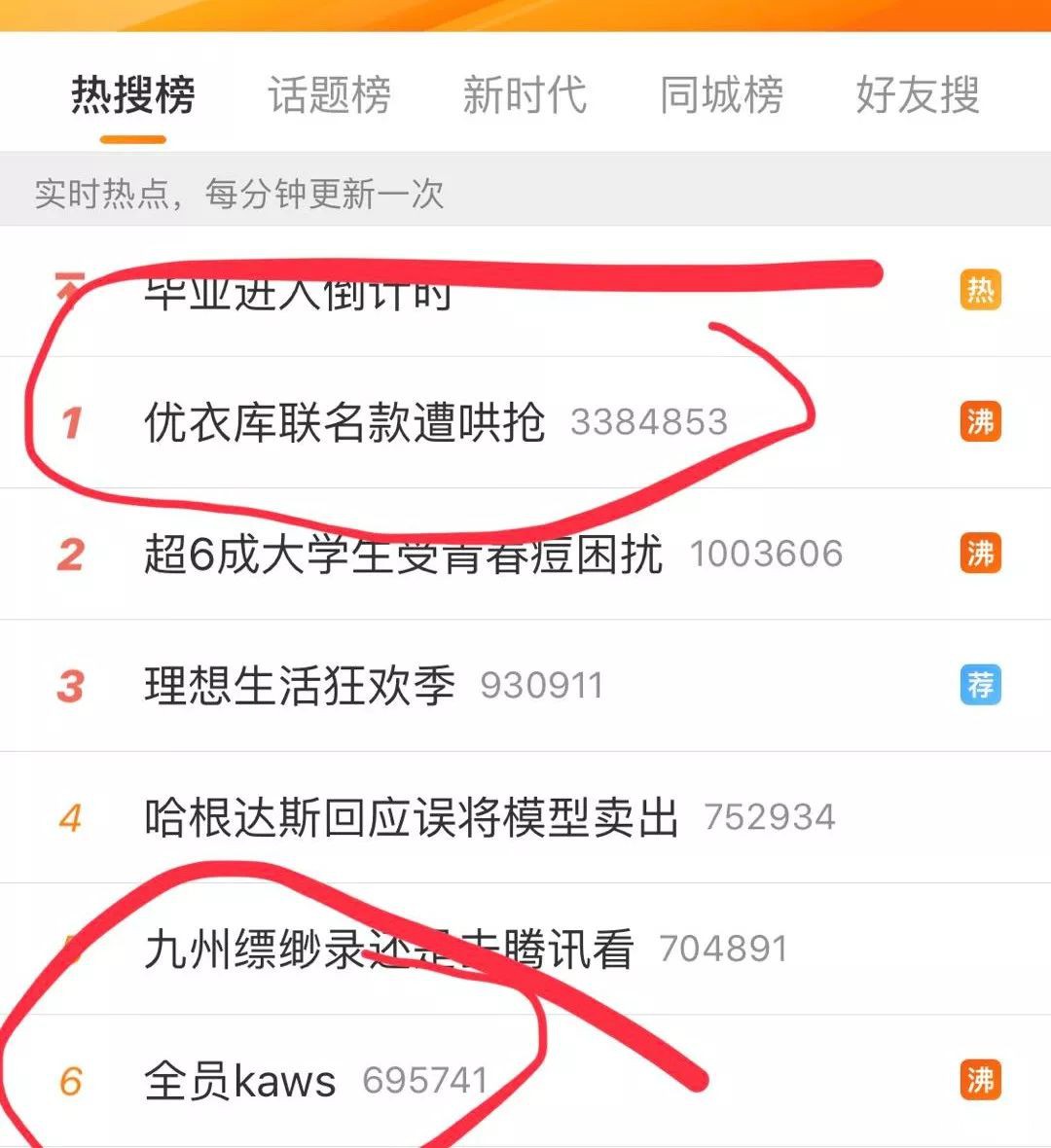 在3秒钟内,优衣库和KAWS的联名款便被抢购一空…….因此连霸微博两个热搜!
