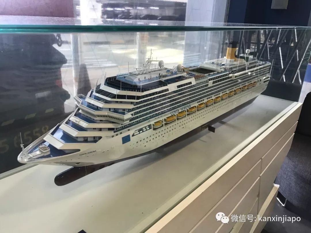 邮轮公司也展出邮轮模型给游客参观。这艘是歌诗达威尼斯号,它最近首次登陆新加坡。