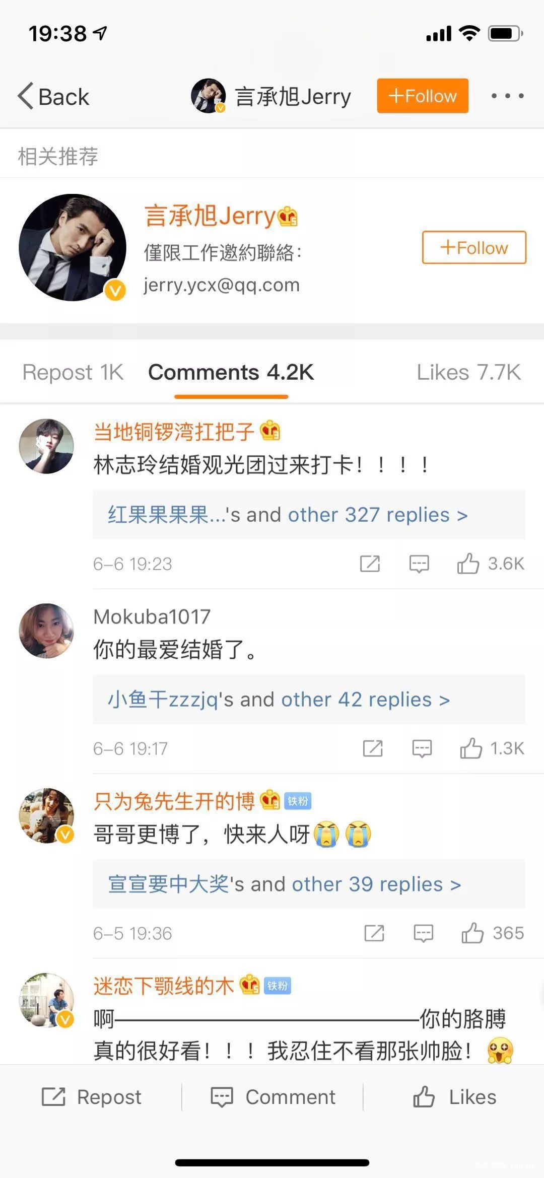 作为全民女神,眼哥听到不少人心碎的声音。虽然这件事情与言承旭无瓜,但是还是看了一眼他的微博。