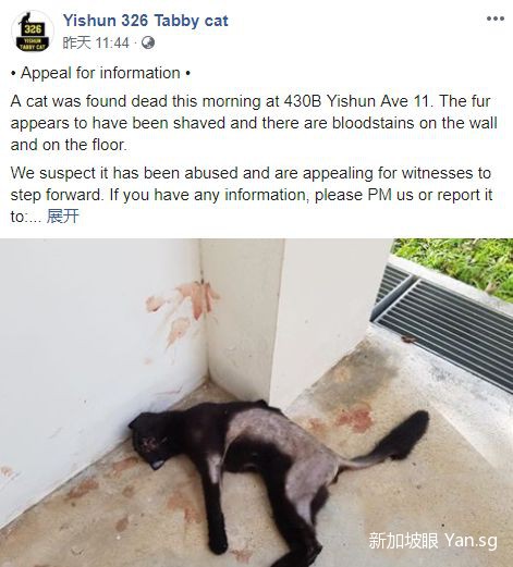 黑猫疑似在新加坡被虐杀,现场血迹斑斑……