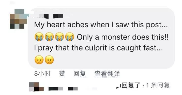 ”看到这个贴文的时候我心好痛,只有怪物才会这样虐待动物。我祈祷罪魁祸首赶紧被抓住”