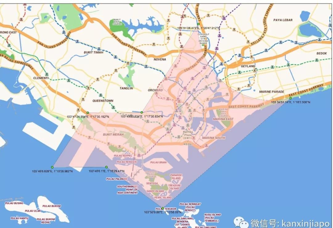 这次设立的禁飞区,包括滨海湾市区、武吉士-小印度、港湾-圣淘沙、中峇鲁-红山、乌节路、和马林百列部分区域。