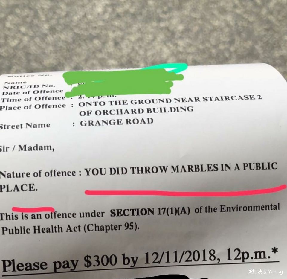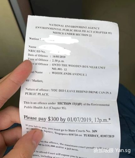 以上网友收到惩罚,是因为违反了新加坡环境公共卫生法令。