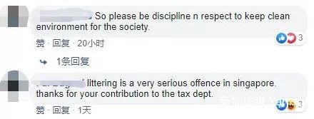 网友B:乱丢垃圾在新加坡是很严重的违法行为,感谢你为税收部门做出贡献哦~