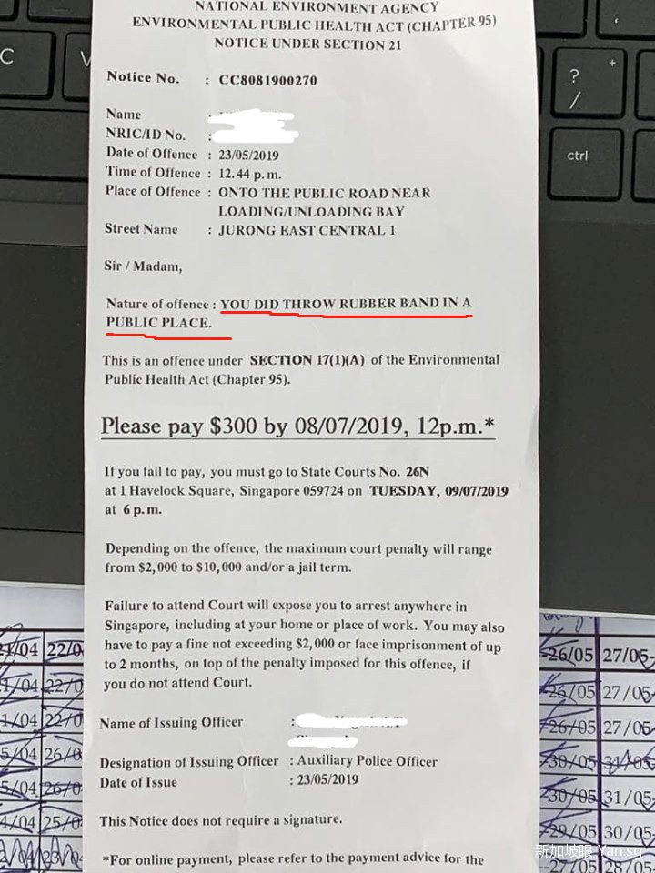 昨天(5月26日),有网友在社交媒体自曝,她在公路上扔了个橡皮筋,竟被新加坡环境局罚款300新币!