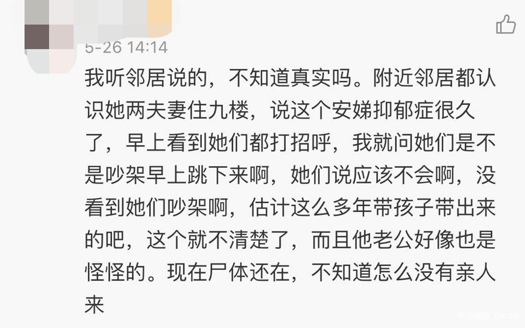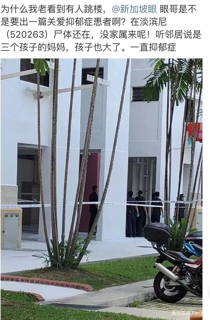 今天(5月26日)下午,新加坡眼收到了微博网友的爆料称,她在淡滨尼21街附近发现有人跳楼自杀,警察当时已经抵达现场。
