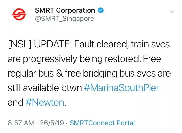 经过半个小时左右的极力抢修,SMRT终于是把电力故障问题给解决了,红线才恢复正常运行。