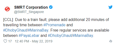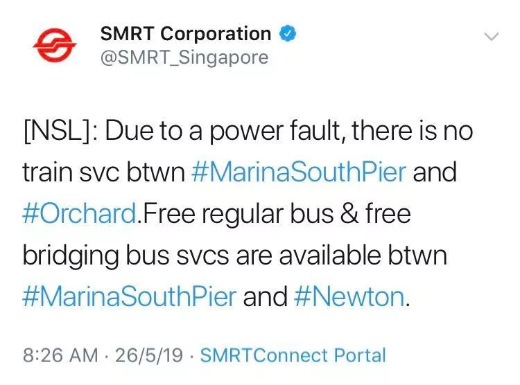 然而,没过多久……8点26分的时候,SMRT在推特上表示问题没解决,所以滨海南码头站和乌节站之间的列车服务就全部中断了!