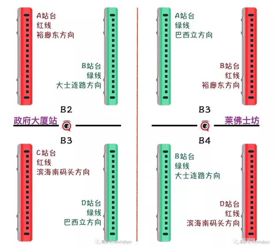 莱佛士坊和政府大厦这两站,就是红线、绿线傻傻分不清!