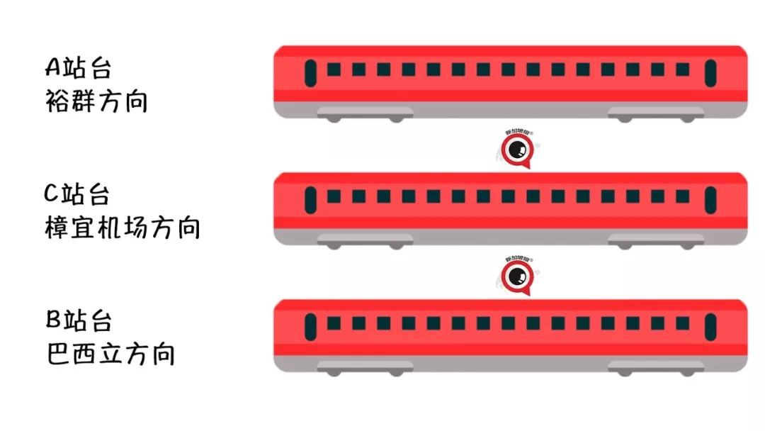 But,你到现场一看,会发现它是朝着不同方向的3趟列车平行排开的!有A、B、C三个月台啊你妹!(相信第一次看到这种情况的人,爆粗是脊椎反射)