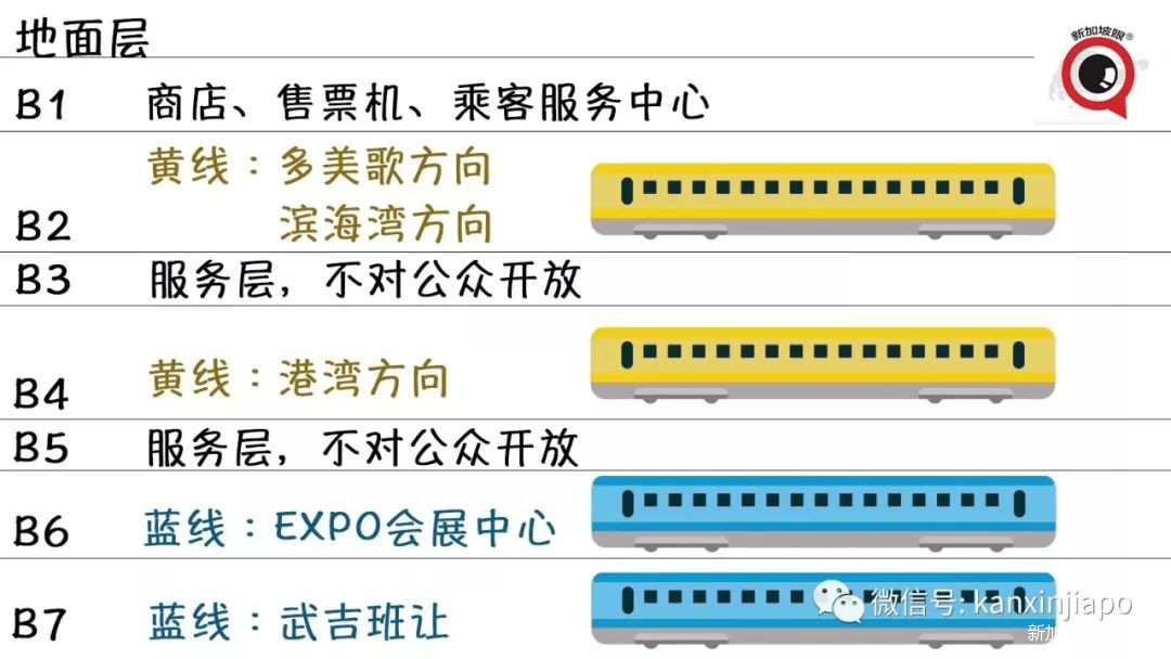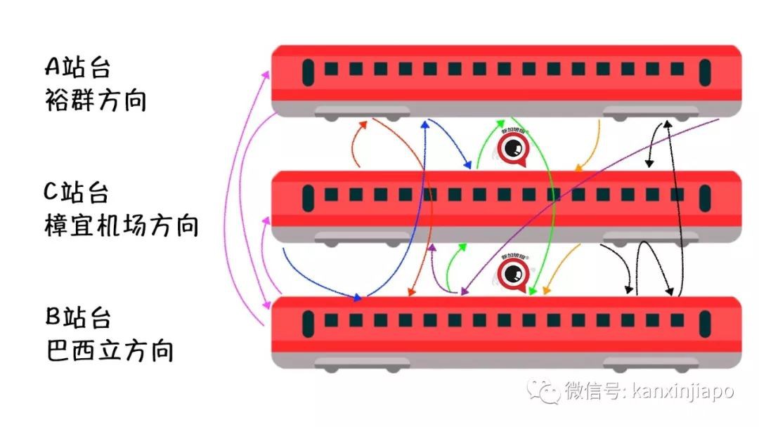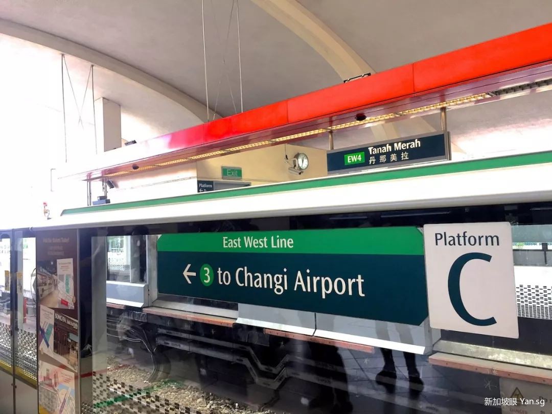 如果是去樟宜机场,就是要从A、B站台出来,去中间的C站台。如果是从樟宜机场去其他方向,就直接从中间的车换乘两边的即可。
