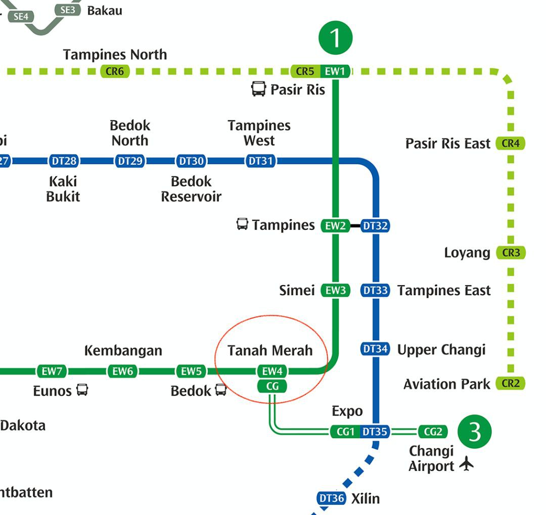 其实光看地铁线路图,挺清晰的嘛,就是要么去樟宜机场,要么去巴西立嘛~