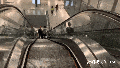海湾坊这一站,就在滨海湾金沙购物中心楼下,是很多游客必打卡的地方,也是让人崩溃的地方,因为这里的电梯会“劈叉”!