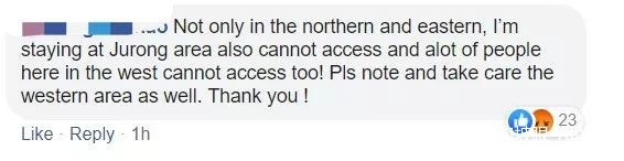 不管怎么说,当我们看了M1的通告后,以为只是新加坡东部和北部的小伙伴受影响时,转眼就看到西部的小伙伴也在“哀嚎”!