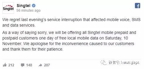 当时由于民怨很大,新电信官方决定:所有Singtel用户获得一天流量免费补偿!