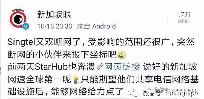 一开始还以为只是个例,没想到不一会网络上好多住在新加坡西部的网友表示自己不嗨森了~纷纷吐槽起断网的事实。