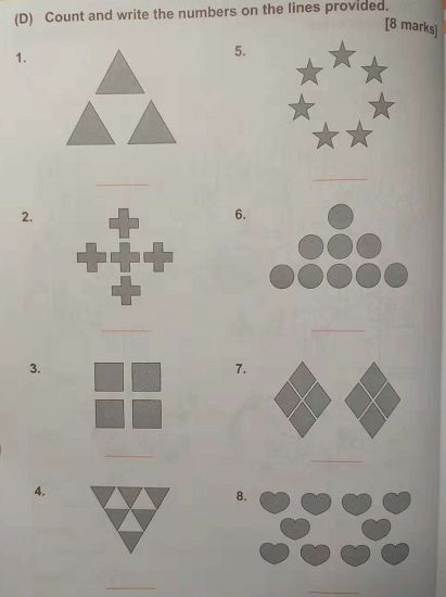 孩子可以根据图形的数量,将对应的数字填写好。