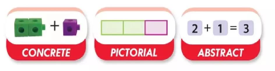 这种建模的教学法叫CPA教学法,在新加坡的幼儿园和小学的数学中用得非常广泛。