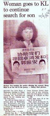 新加坡本地的报刊、电台、电视上,不断发布失踪信息,呼吁民众提供线索……