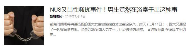 5月11日被曝在NUS学校宿舍里偷拍女同学洗澡的男生,在今天(5月13日)被“光速”批捕并控诉!