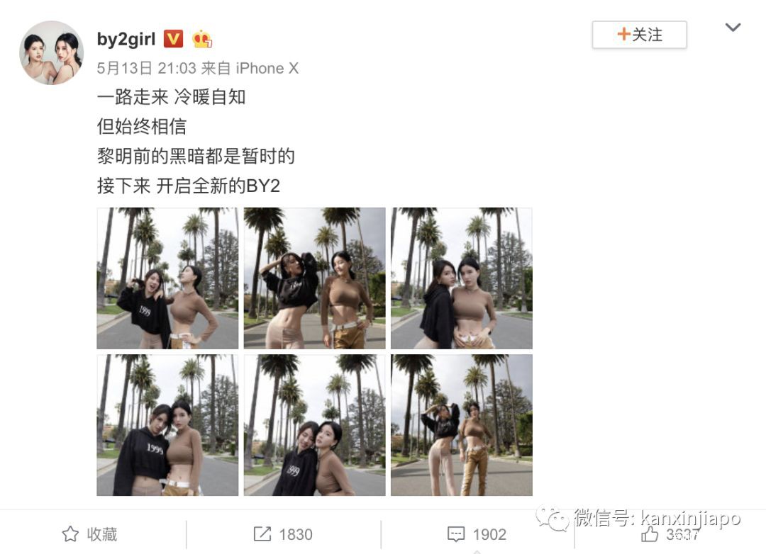 前男友何猷君求婚成功,新加坡姐妹花BY2发文“冷暖自知”