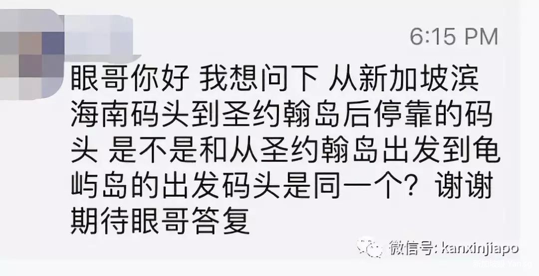 新加坡眼收到网友求助,这名网友询问关于从圣约翰岛到龟屿岛乘船码头的问题。