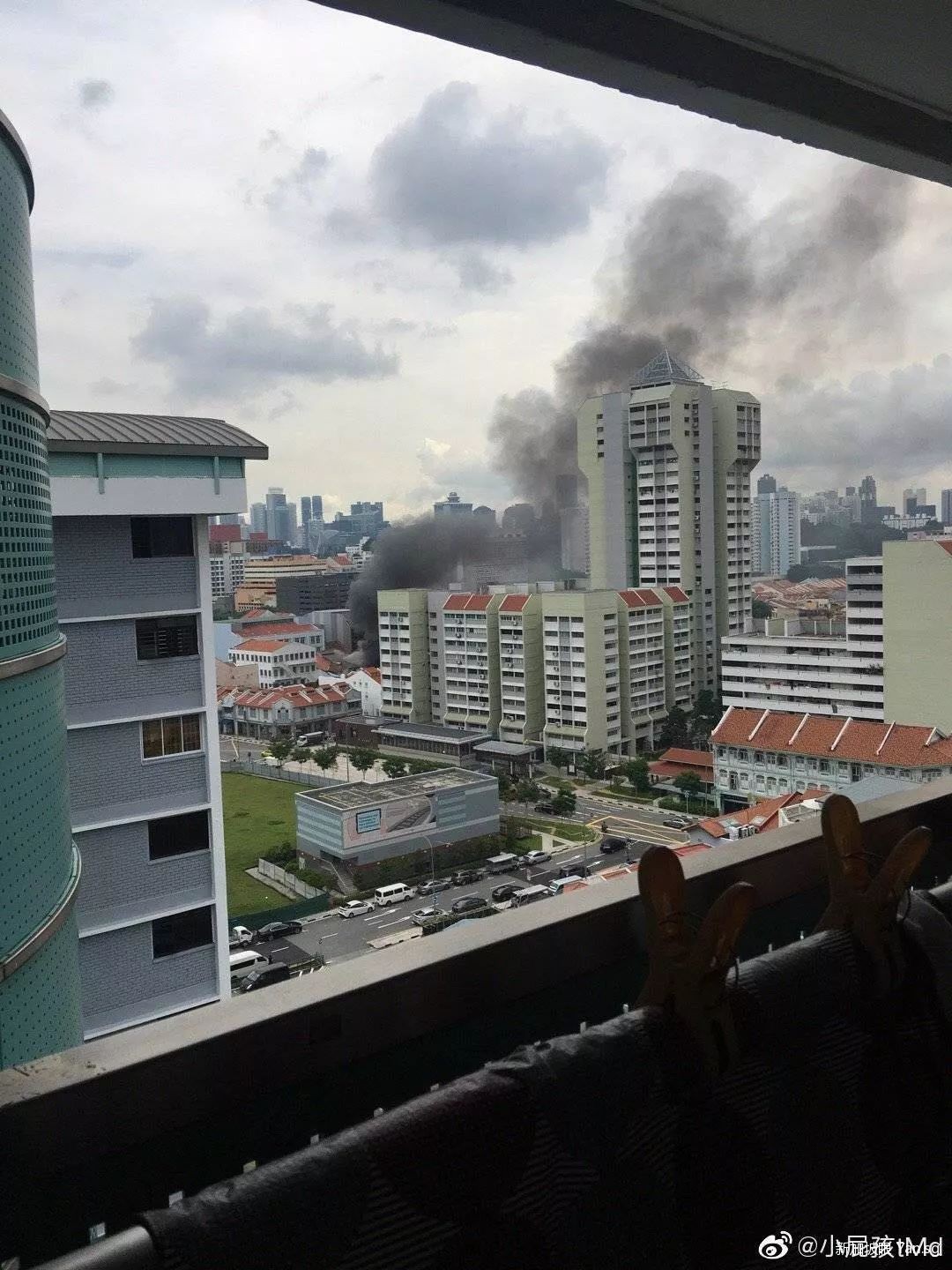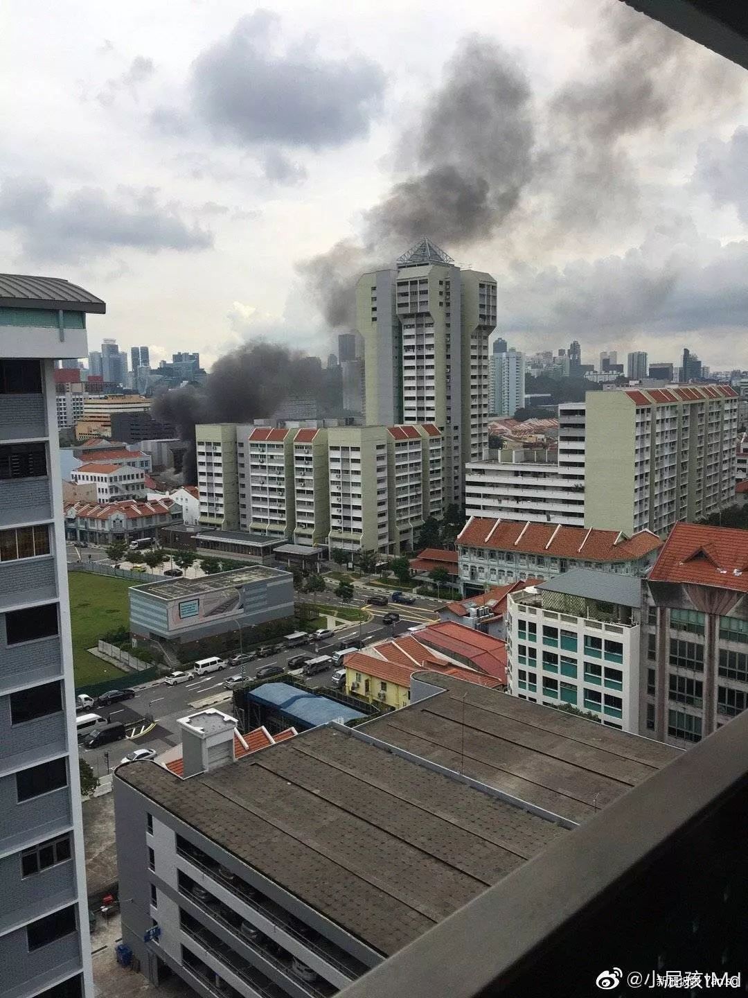 不少在附近的朋友都拍到了火灾现场,发微博@新加坡眼。